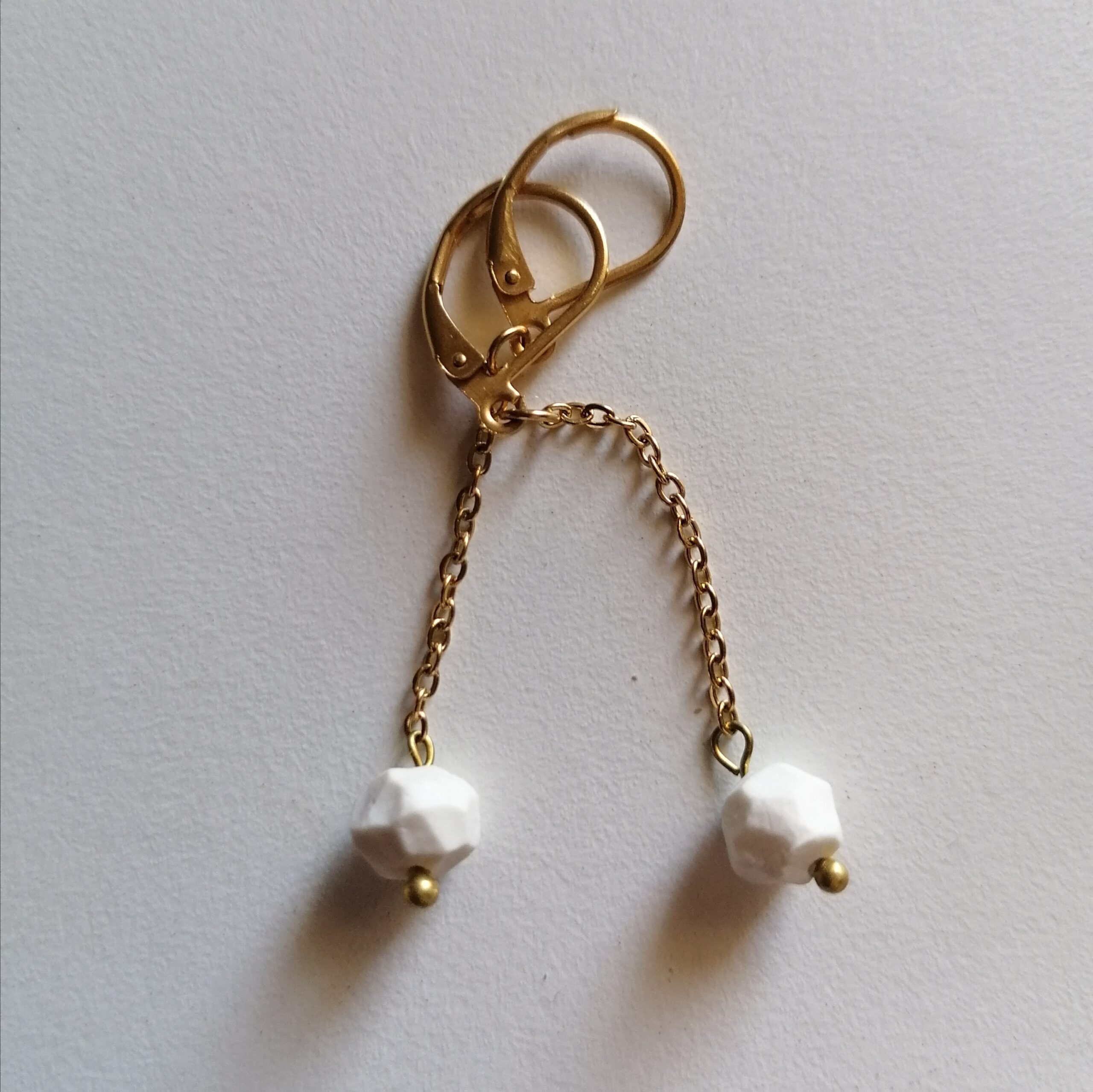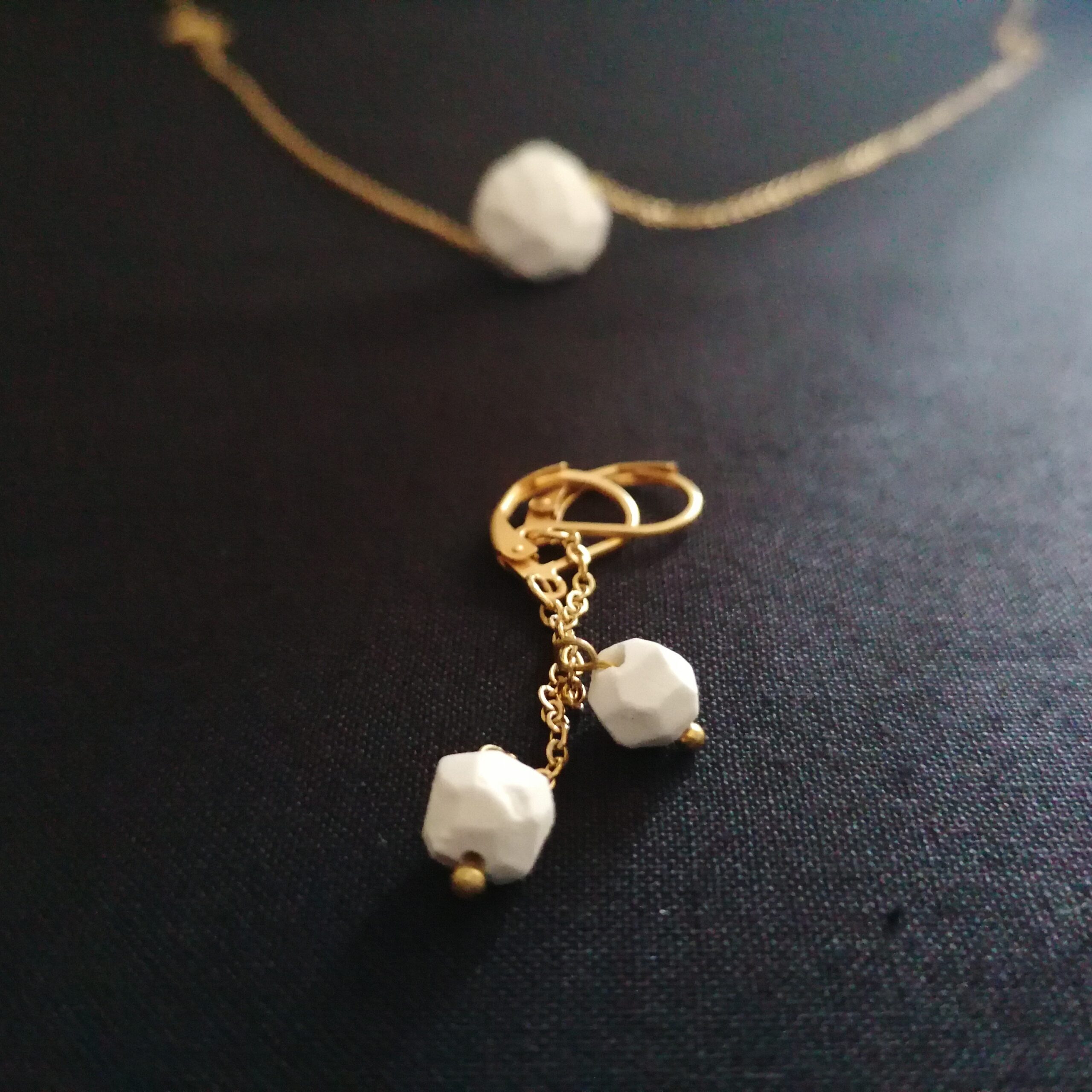 Perles en porcelaine et boucle d’oreille confectionnées main.